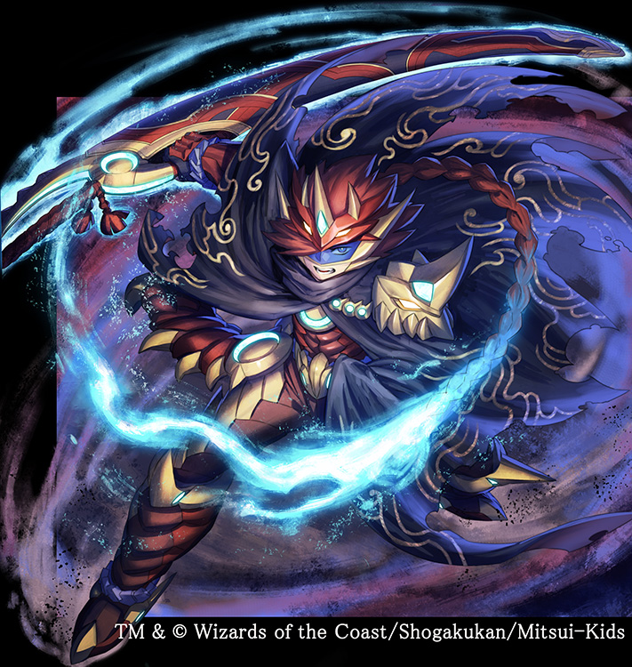 1boyarmorarmored bootsassault visorblack cloakblue visorbootsbraidbrown armorbrown haircloakcopyright noticefiery hairglenmalt (duel masters)gold armorholdingholding weaponlong braidlong hairmulticolored armoropen mouthred armorsingle braidsoloteethweapon