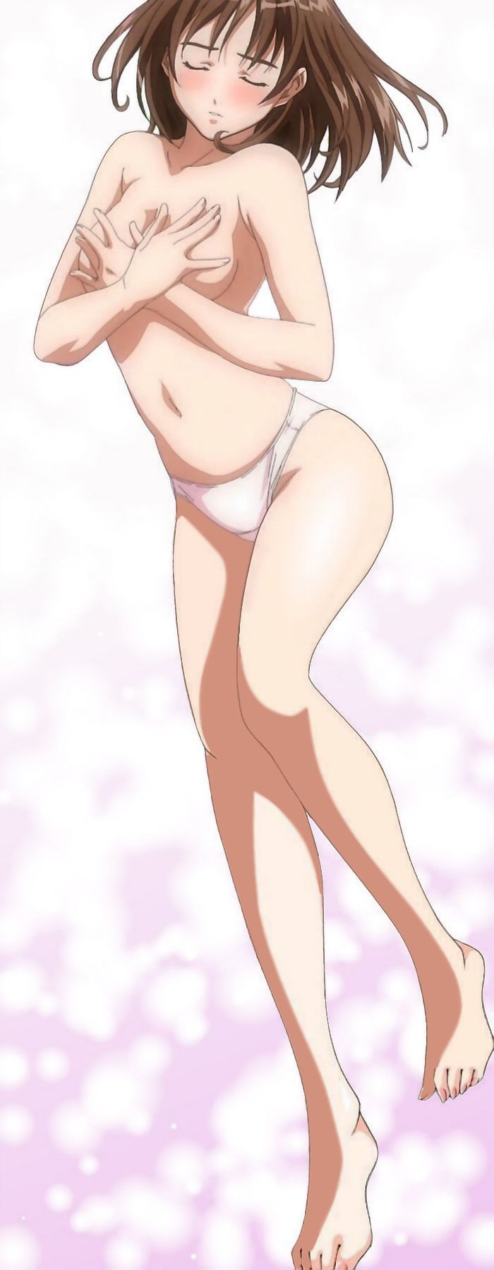 1girlbarefootblushbreastsbrown hairclosed eyescovering breastscovering privatesfeetfemale focusnavelpantiesshort hairsolotopless femaleunderwearunderwear only
