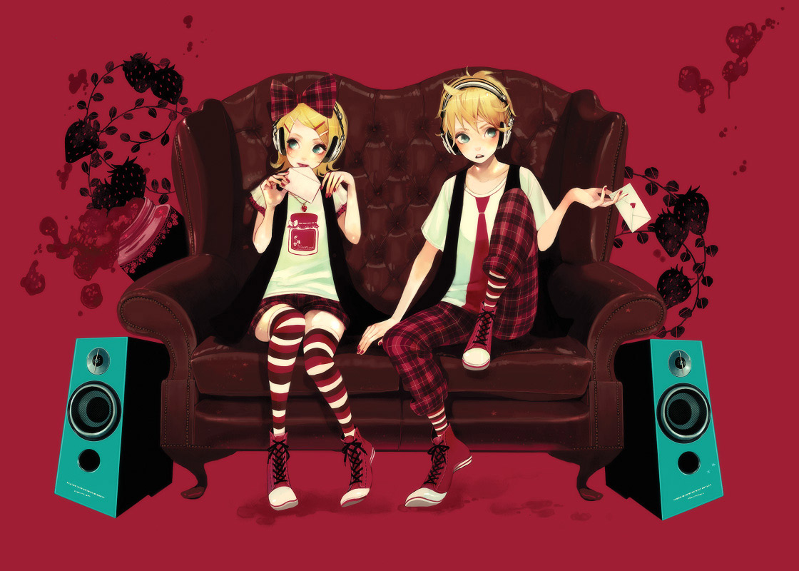 1boy1girlaqua eyesblonde hairbrother and sistercouchhair ornamenthair ribbonhairclipheadphonesletterlove letternail polishred nailsribbonshoesshort hairsiblingssittingskirtspeakerstriped clothesstriped thighhighsthighhighstwinszettai ryouiki