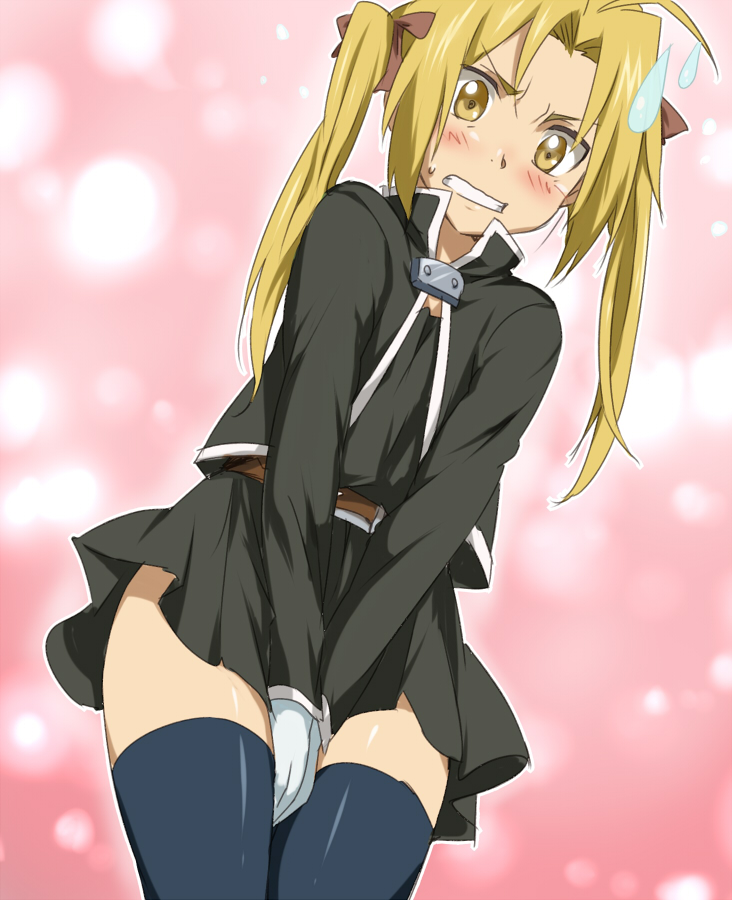 00s1boybetween thighsblonde hairblushclenched teethcovering crotchcovering privatescrossdressingcrossdressing (mtf)embarrassedglovesmale focusskirtskirt tugsolosweatdropteeththighhighsthighstraptwintailsv armsyellow eyeszettai ryouiki