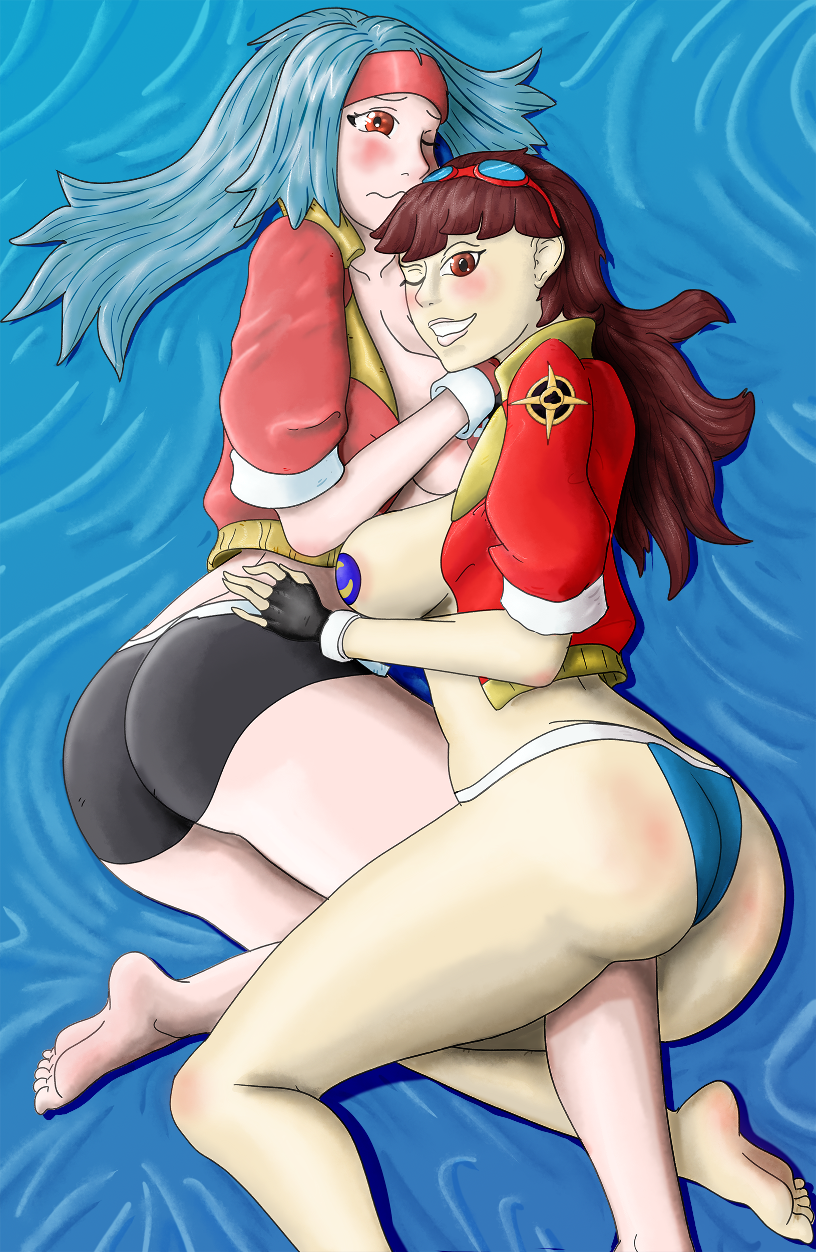 2girlsblue hairbrown eyesbrown haircuddlingFlag for Deletionluna walker pokemon utopuspokemonpokemon utopusred eyestheloadingcrewthong