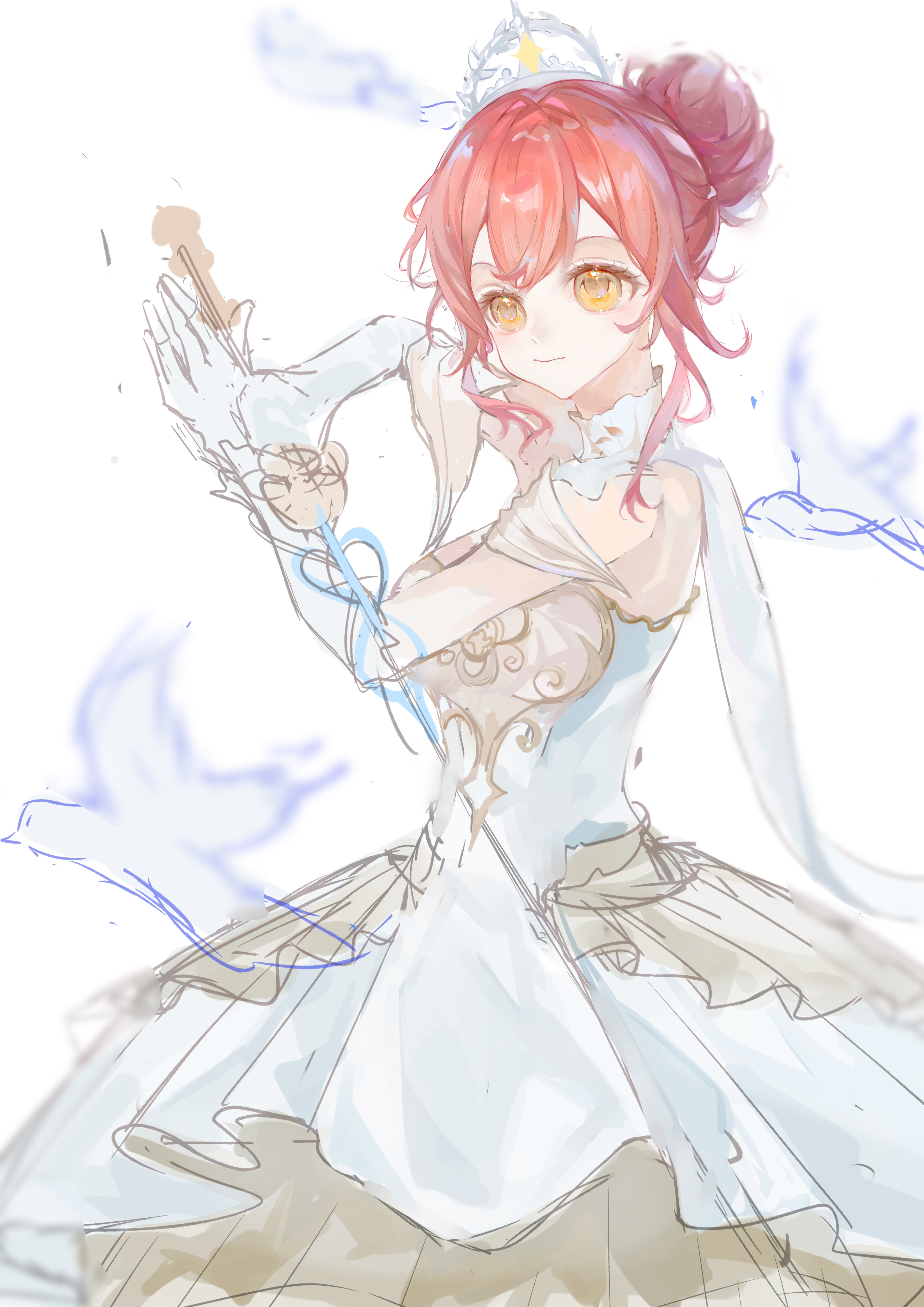 1girlarmorbare armsbirdbreastplatebrown eyesclosed mouthcollarcowboy shotdetached collardianzishashouqiuyubandot nosedovedressexpressionlesseyelashesfighting stancefrilled arm warmersgloveshair bunhigh collarholdingholding swordholding weaponlace collarlight blushlooking aheadmedium dressmelody bloom (infinity nikki)off shoulderoff-shoulder dresspink hairpleated dressrapierribbonsee-through clothessee-through sleevesshort hair with long locksshort sleevessidelockssimple backgroundsingle glovesingle hair bunsolostandingswordtiarawavy hairweaponwhite arm warmerswhite backgroundwhite collarwhite dresswhite gloveswhite ribbon