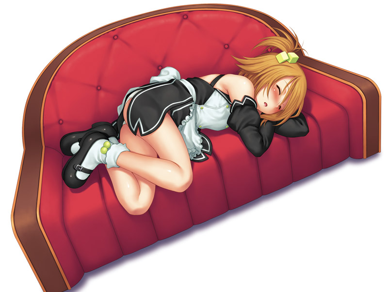 1girlblack shoescouchcube hair ornamentfemale focushair ornamentmary janesred upholsteryshoessleepingsockssolowhite socks
