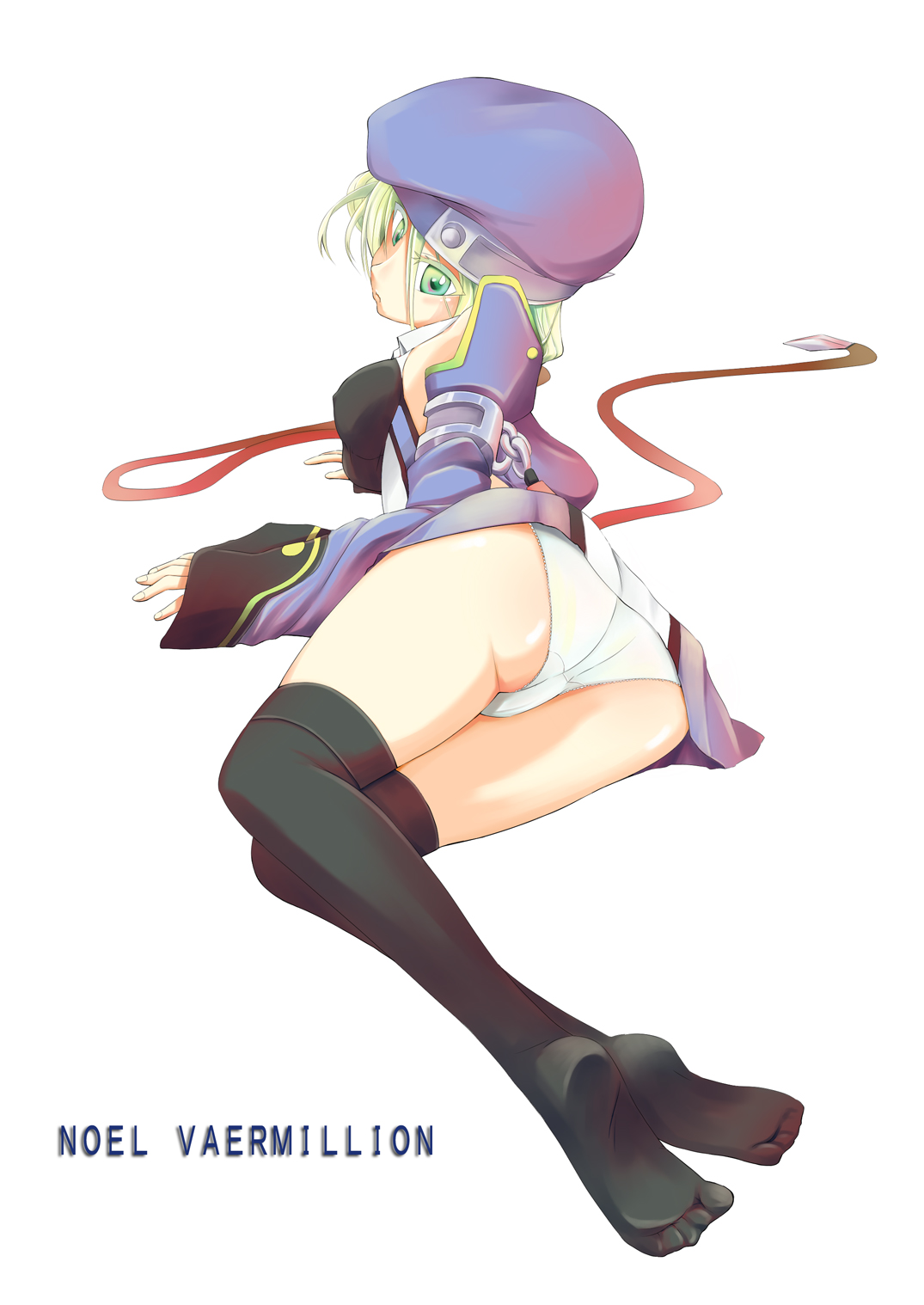 1girlassberetblonde hairbreastsdetached sleevesdressfeetfemale focusgreen eyeshatpantiesshort dressshort hairsolothighhighsunderwear