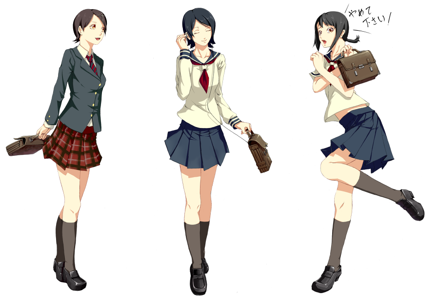 00s3girlsbrown eyesfemale focusfull bodylegsmultiple girlsschool uniformserafukushort hairsimple backgroundskirtwhite background