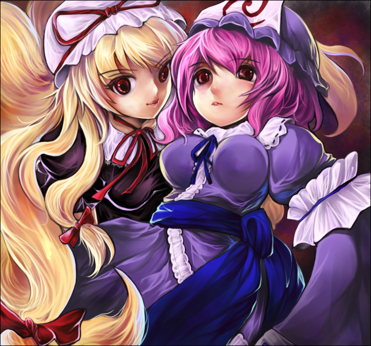 2girlsblonde hairbreastsfemale focushatlarge breastslong hairmultiple girlspink hairred eyesshort hair