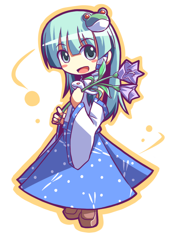 1girldetached sleevesfemale focusflowerfrogfull bodygreen eyesgreen hairhair ornamentjapanese clotheslong hairmatching hair/eyesmikoorange outlineoutlinesimple backgroundsnakesolowhite background