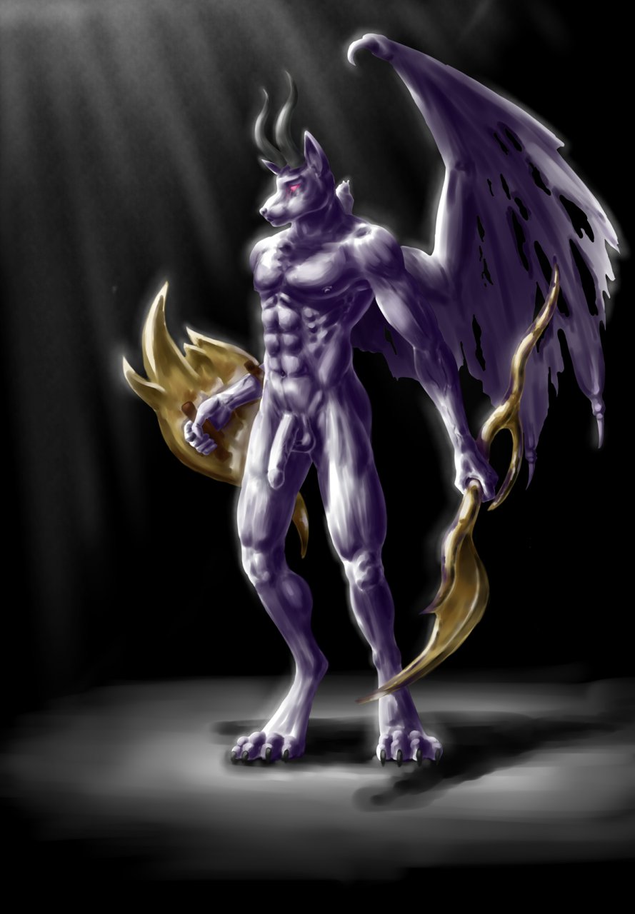 1boydemonFlag for Deletionfull lengthfull-length portraitgoathalberdincubusmalemale onlymuscularportraitshieldsolostandingswordweaponwings