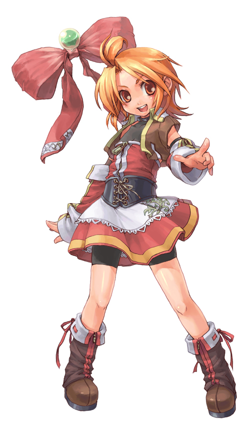 1girlahogeblushbootsfemale focusfull bodymatching hair/eyesorange eyesorange hairribbonshort hairsimple backgroundsolowhite backgroundzipper