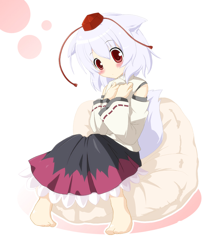 1girlanimal earsbarefootblushdetached sleevesfemale focushatred eyesshort hairsolotailtokin hatwolf earswolf tail