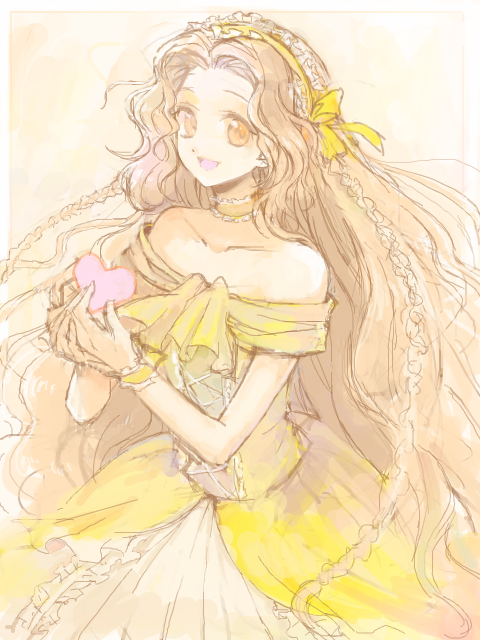 00s1girlbraidbrown eyesbrown hairchokerdressfemale focusformal clothesgradient backgroundhairbandheartlong hairsmilesolovery long hair
