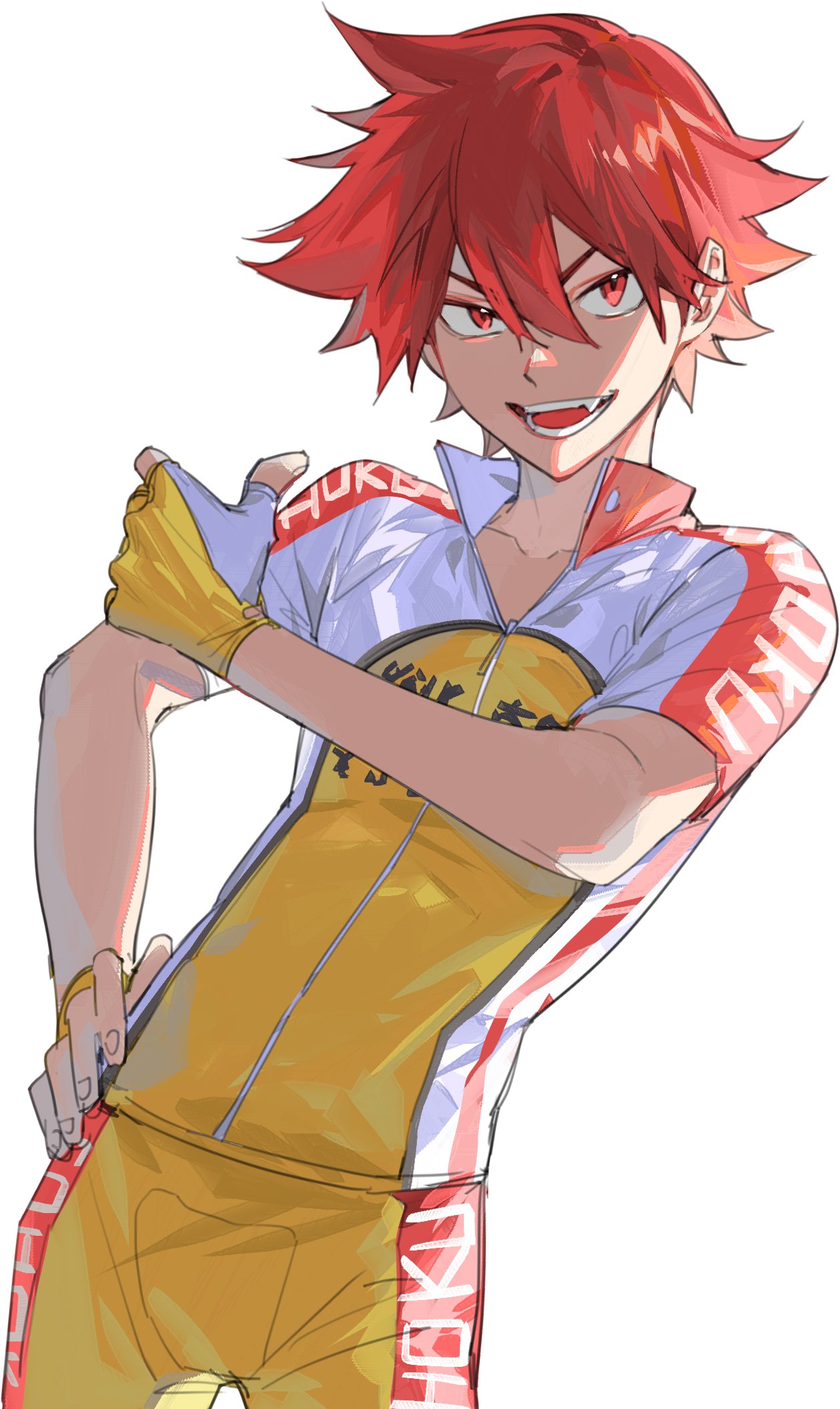 enjoji jin, dandadan, commentary request, highres, 1boy, animal ears, bag, bandaged hand, bandages, black shirt, blurry, blurry background, closed mouth, cloud, cloudy sky, cowboy shot, grey pants, looking to the side, male focus, muscular, muscular male, otamanojakusi, outdoors, pants, portrait, red eyes, shirt, short hair, shoulder bag, skin tight, sky, solo, sportswear, turtleneck, turtleneck shirt