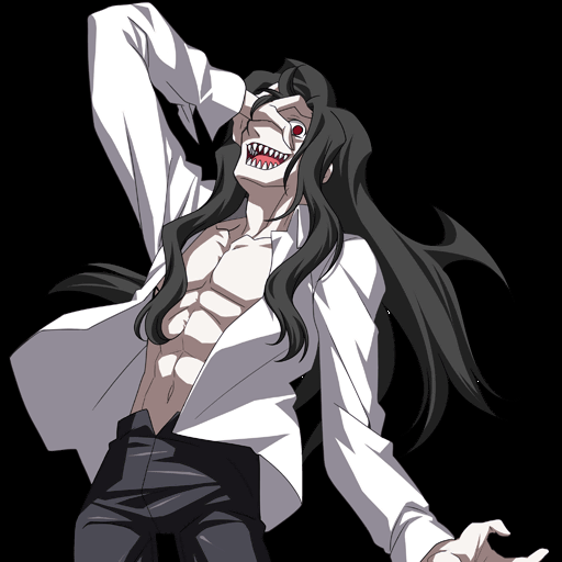 00s1boyabsblack backgroundblack hairblack pantsfangshand on own facehand over eyelong hairlong sleeveslooking at viewermale focusopen clothesopen shirtpantsred eyessharp teethshirtsimple backgroundsoloteethwhite shirt