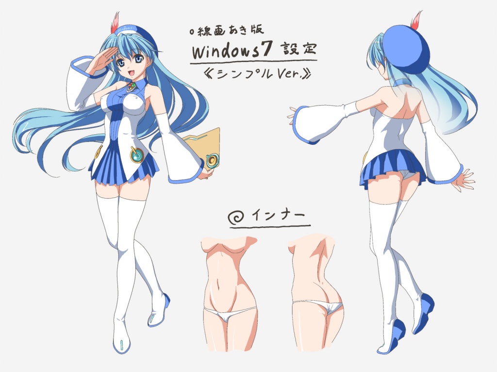 1girlaqua hairassberetblue eyesblue hairbroochdetached sleevesfolderhatjewelrylaughinglegslong hairlowleglowleg pantiesmultiple viewsopen mouthpantiespantyshotreference sheetshirtskirtthighhighstopless femaleturnaroundunderwearupskirtwhite panties