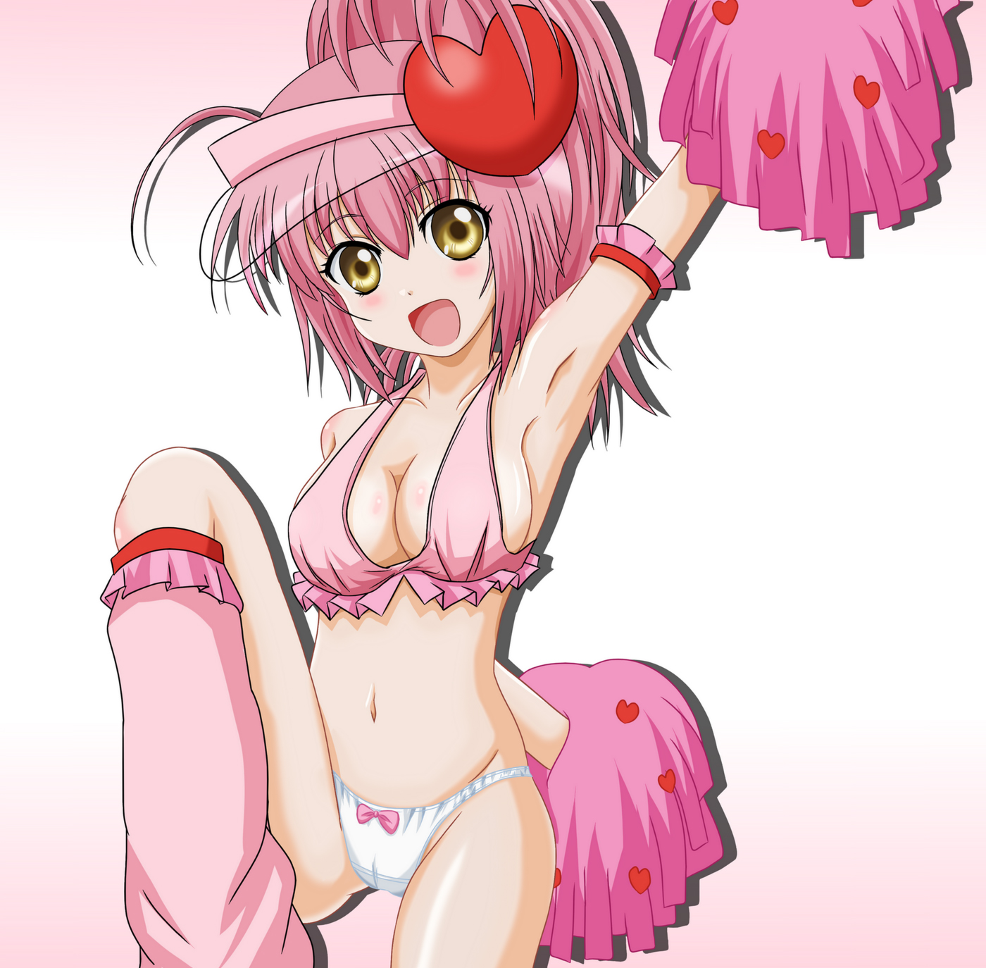 1girlarmpitsblushbootsbottomlessbreastscheerleadercleavagecrop topfemale focuskneehighsloose socksmagical girlno pantspantiespink bootspink hairpom pom (cheerleading)ponytailsockssolounderwearyellow eyes