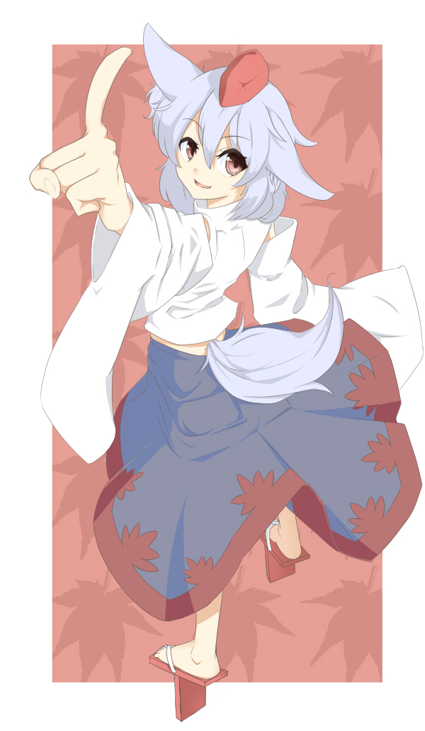 1girlanimal earsdetached sleevesfemale focusgetahatpointingred eyesshort hairsolotailtengu-getatokin hatwolf earswolf tail