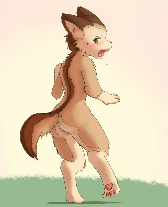 androgynousanimal earsanimal handsassbackbarefootblushfangfeetfurrygrasslooking backnudeopen mouthoutdoorspawpadssolessolospread toestailtoeszenra