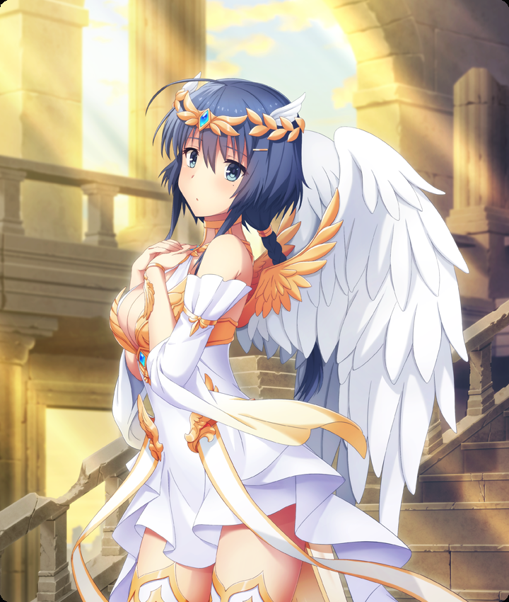 :o1girlahogeblue eyesblue gemstoneblue hairblue skyblushbreastscircletcleavagecloudcowboy shotdappled sunlightdetached sleevesdressfeathered wingsfrom sidegemgold circlethair ornamenthands on own chestlarge breastslong hairlooking at viewerlooking to the sidelow ponytailmolemole under eyemorningparted lipsponytailrailingruinssidelocksskysolostairsstone stairssunlightthighhighsvalkyriewhite dresswhite sleeveswhite thighhighswhite wingswing hair ornamentwingszettai ryouiki