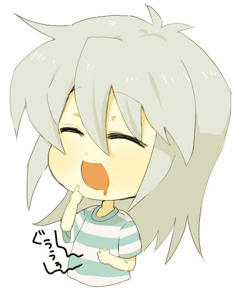 1boyandrogynousblushchibiclosed eyeshungrymale focusopen mouthshirtsolostriped clothesstriped shirtwhite hair