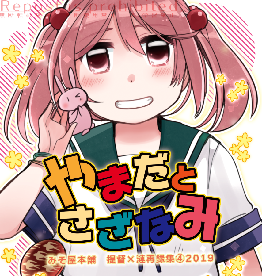 1girlanimalanimal on shoulderbadgeblue sailor collargrinhair bobbleshair ornamentpink hairrabbit on shoulderred eyessailor collarsailor shirtschool uniformserafukushirtshort hairsmiletwintailsupper bodywhite shirt