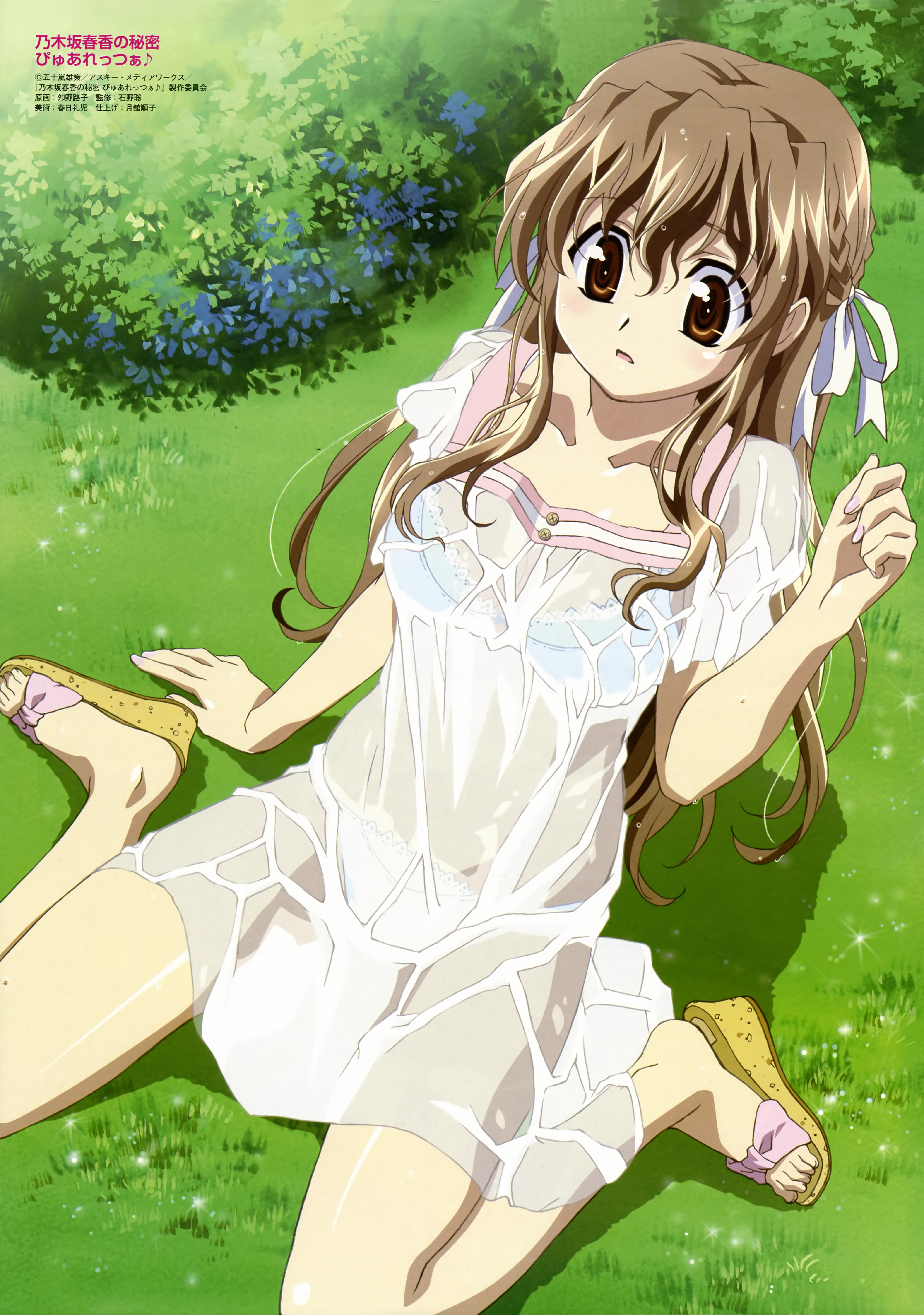 00s1girlbrabrown eyesbrown hairdressfemale focuslingerielong hairpantiesribbonsandalssee-through clothessolounderwearwetwet clothes