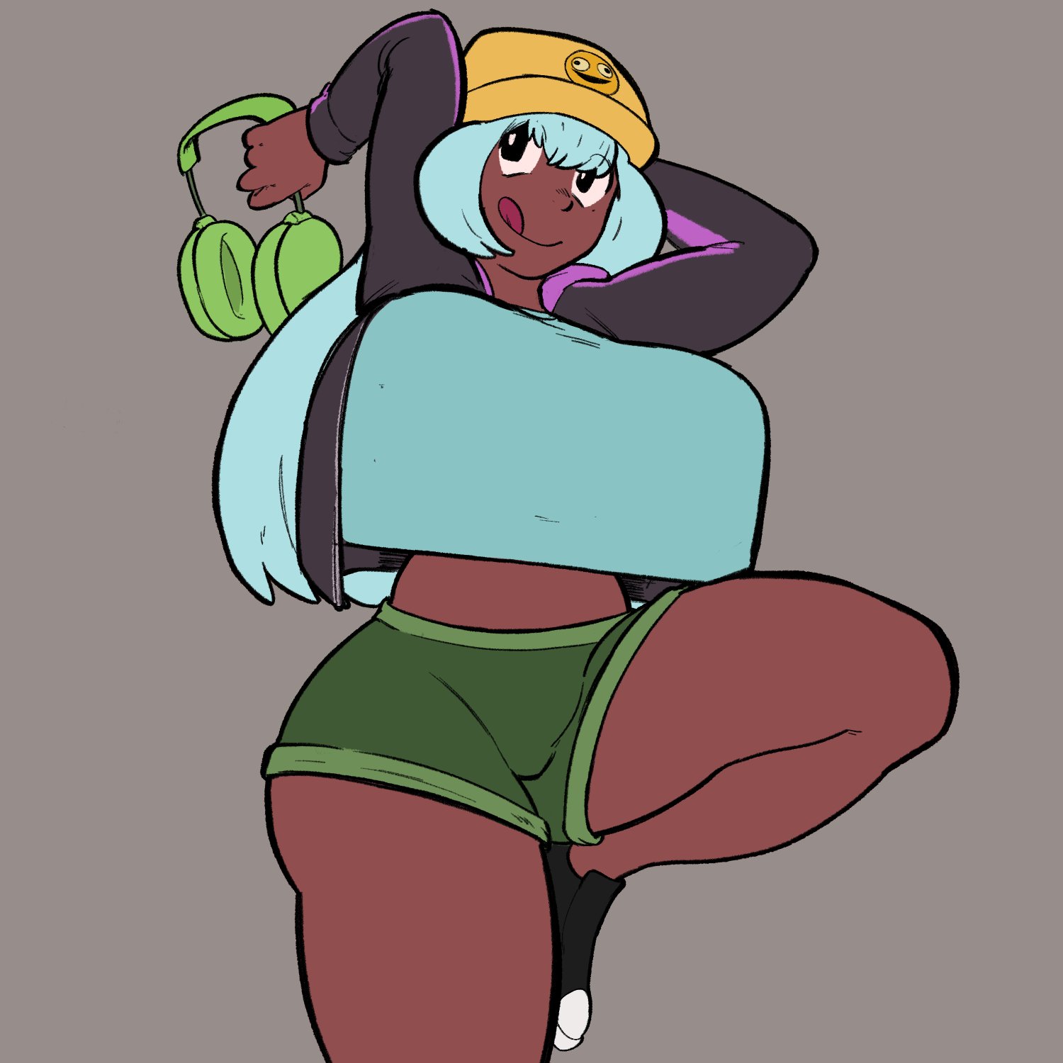 1girlsarms behind backarms behind headarms upassass peekbig breastsbig thighsblack eyesblue hairbreastsbreasts bigger than headbrown bodybrown skinchild bearing hipscrop topcrotchcumulusgiodark nipplesdark skindark-skinned femaledolly dimpleyfemalefemale onlyFlag for Deletiongiant breastsgigantic breastshatheadphonesholding headphoneshuge breastsjacketlarge breastslarge thighsleg raiseleg raisedleg uplicking lipslong hairlooking upmassive breastsmolemole under eyenavelposingshoesshortssneakerssolospatsspats shortsthick hipsthick legsthick thighstonguetongue outtoplesstopless female