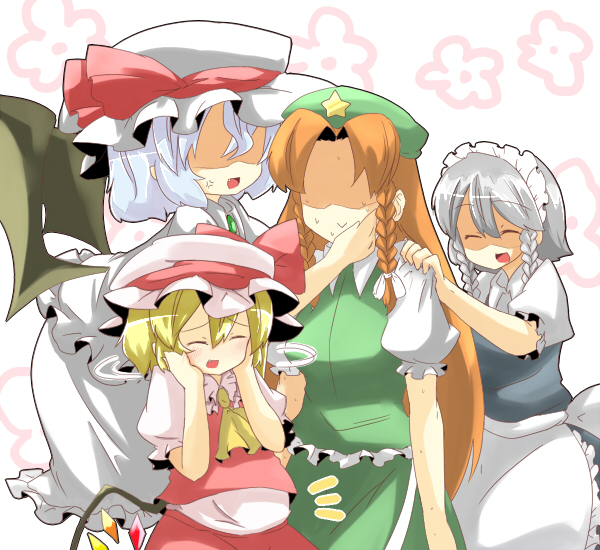 1boy4girlsanger veinartistic errorblonde hairbraidbrown hairdemon girldemon wingsfangfemale focusflowerhair ribbonhairbandhand on another's facehands on another's facehands on own facehatlong hairmaidmaid headdressmultiple girlsno eyesno noseorange hairpregnantribbonshort hairsiblingssistersstar (symbol)surprisedsweattwin braidswingsyuri