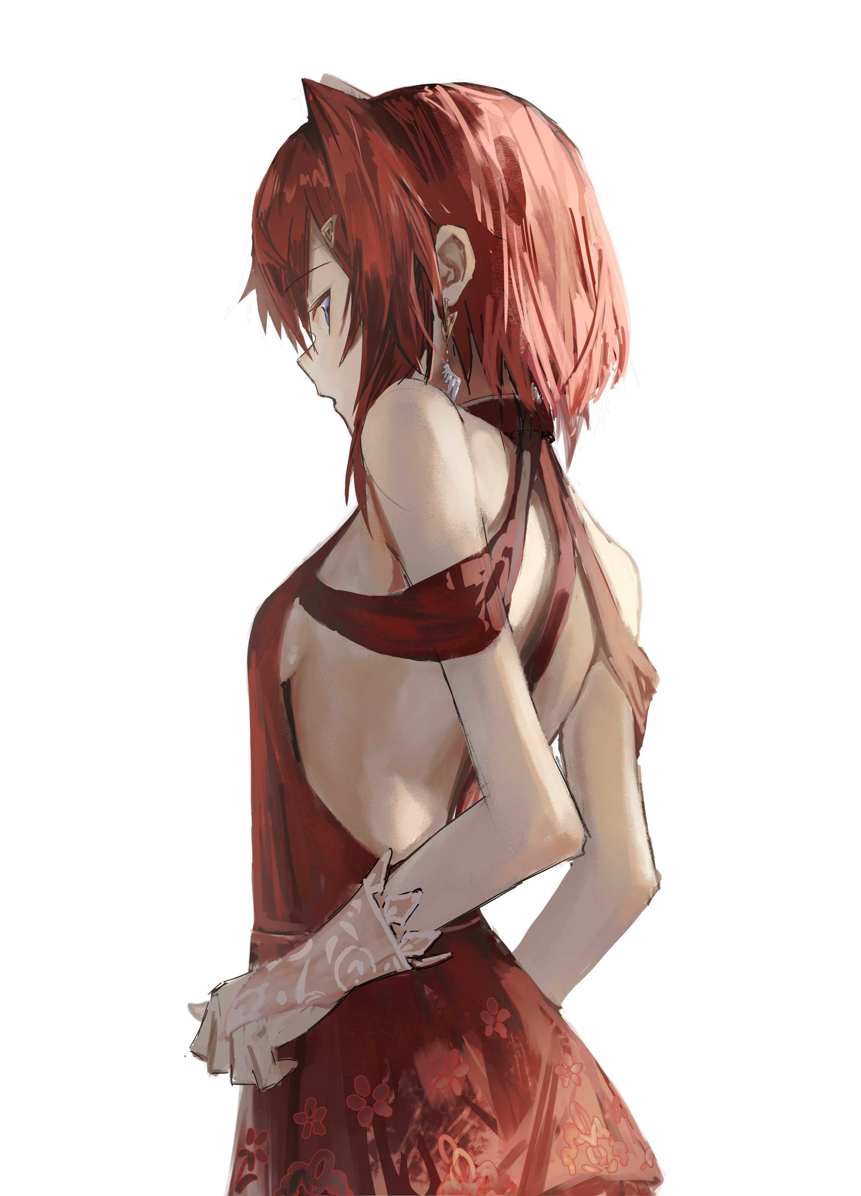1girlbackbackless dressbackless outfitbare shouldersblue eyesbreastsbridal gauntletsdressearringsfloral printfloral print dressfrom behindhalter dresshalterneckjewelrymedium hairopen mouthpink bridal gauntletsprint dressred dressred hairsideboobsimple backgroundsleevelesssleeveless dresssmall breastssoloupper bodyvirtual youtuberwhite background