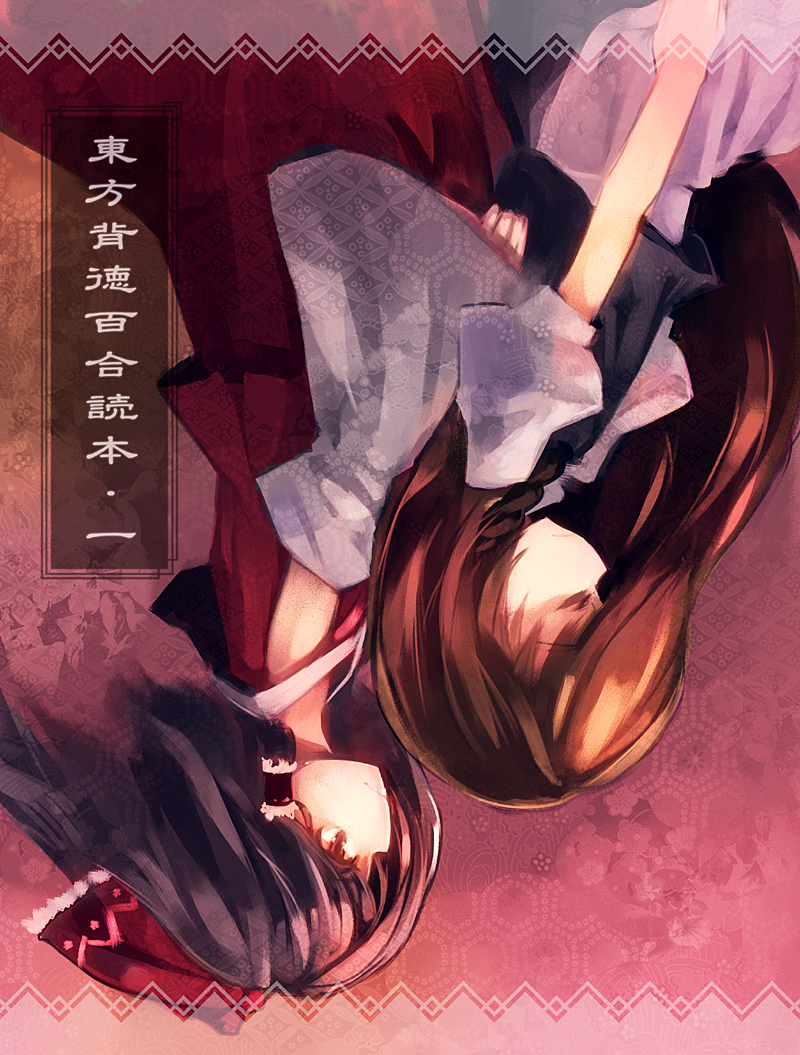 2girlsblack hairblonde hairbowbraiddetached sleevesfemale focusjapanese clotheslong hairmikomultiple girlsshort hairupside-downyellow eyes