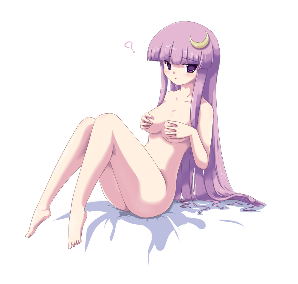 1boy1girlbarefootbreastscovering breastscovering privatescrescentcrescent hair ornamentfeetfemale focushair ornamentlong hairnudenude coverpurple eyespurple hairsolo
