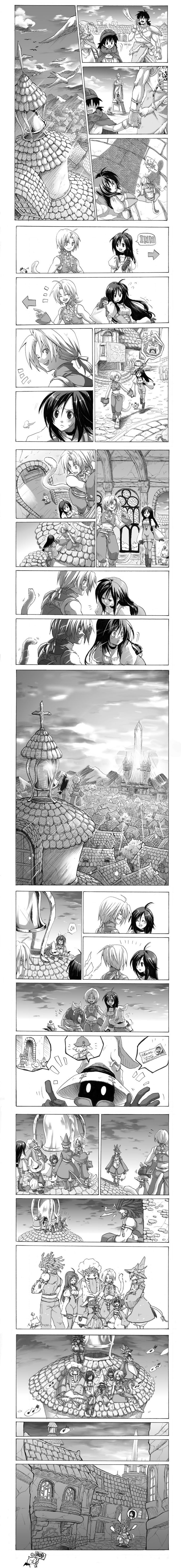 00s4girls6+boysaged downarmorbirdblushbootschildcomiceveryoneglovesgreyscalehathornslong hairmonochromemultiple boysmultiple girlsone eye closedshort hairskytailwink