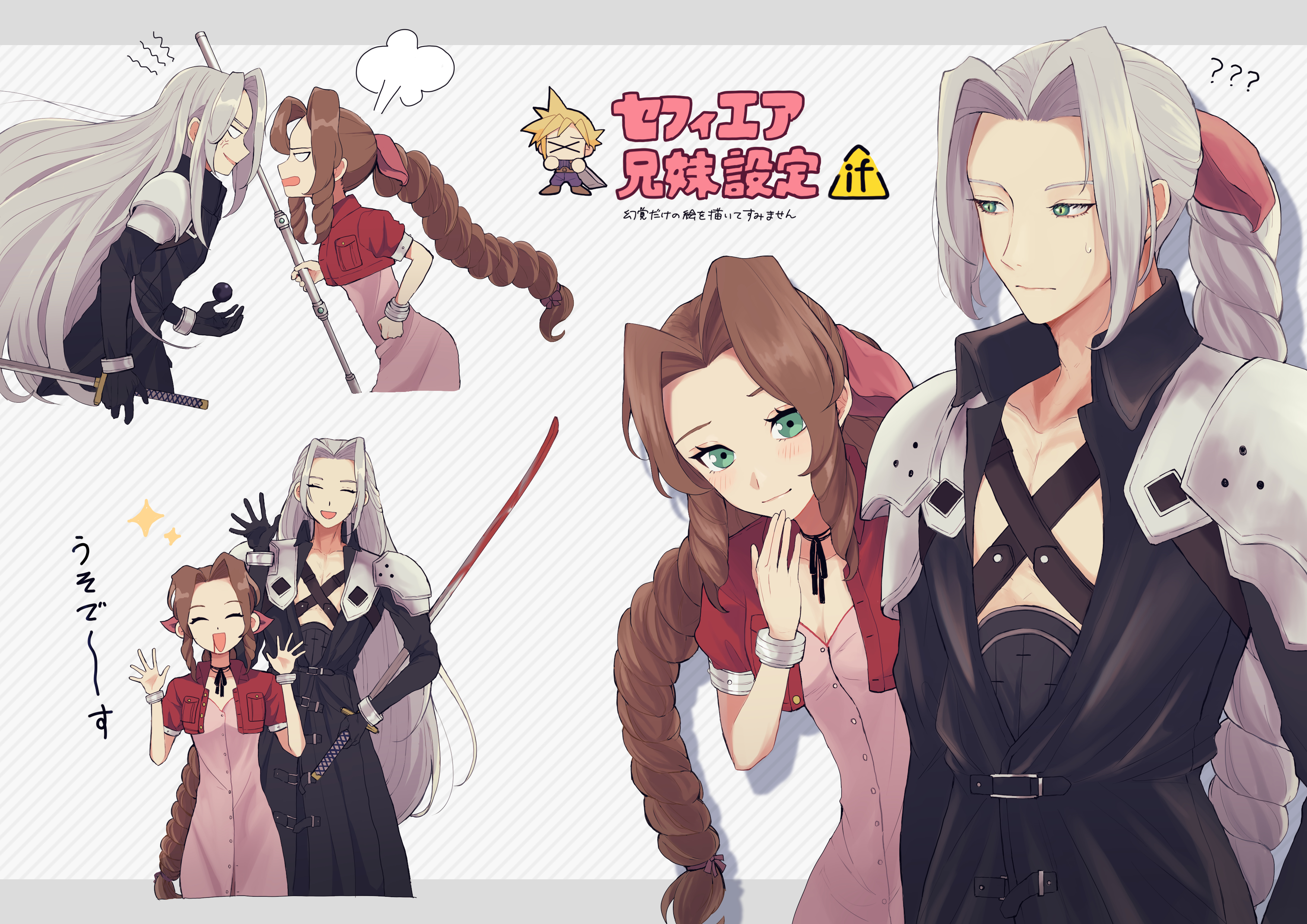 :q1boy1girlanger veinarmorblack coatblack glovesblack materiablack pantsblank eyesbloodbloody weaponblushborrowed hairstylebraceletbraidbraided ponytailbrown hairchokerclosed eyesclosed mouthcoatcropped jacketdressglovesgreen eyesgrey hairhair ribbonhand to own mouthholdingholding staffholding swordholding weaponjacketjewelrylong coatlong hairlong sleeveslooking at anothermasamune (ff7)nahogiisioopen mouthpantsparted bangspauldronspink dresspink ribbonred jacketribbonribbon chokershort sleevesshoulder armorsidelockssilver braceletsmilestaffswordwavingweapon