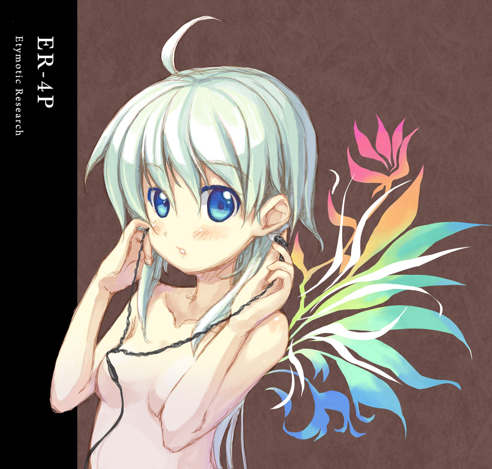 1girlahogeblue eyesblushbreastscensoredcolored eyelashesconvenient censoringearbudsearphoneseyelashesfemale focusflowersketchsmall breastssolotopless femaletopless frameupper bodywhite hairwings