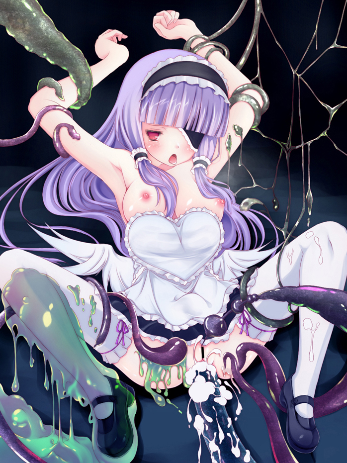 1girlanalbreastscensoredcumeyepatchfemale focusmaidpurple hairrapeslime (substance)solosolo focustentacle sextentaclesthighhighsvaginalwings