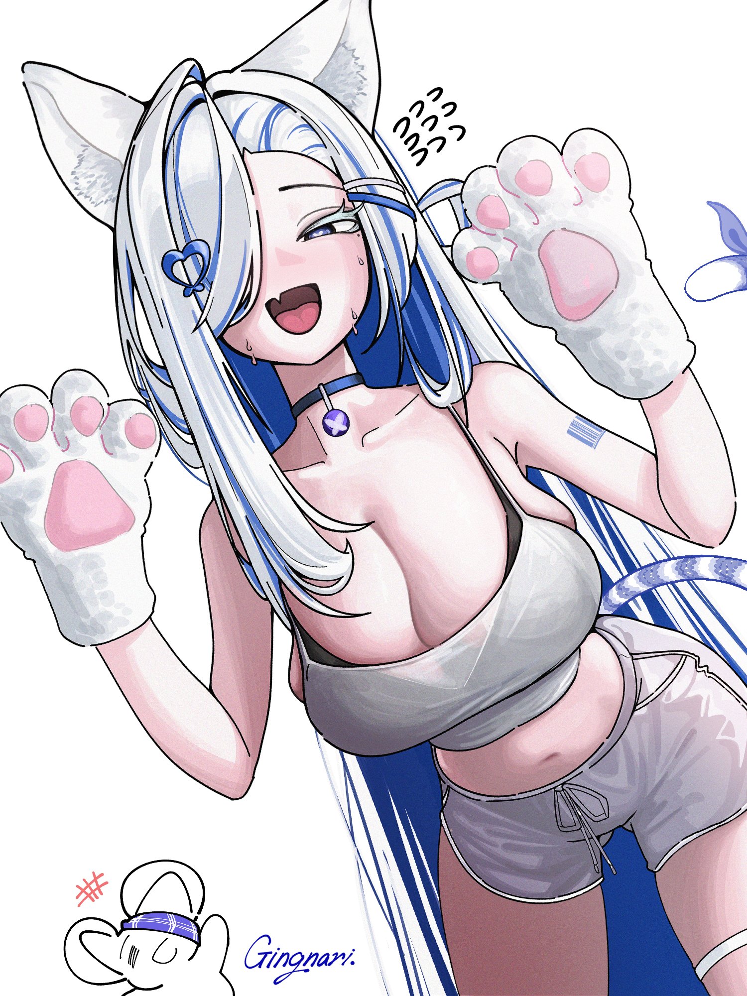 1girlahogeanimal earsanimal handsarm tattoobarcodebarcode tattoobare shouldersblack brablue chokerblue eyesblue hairbrabreastscamisolecat earscat girlcat tailchokercolored eyelashescolored inner hairdolphin shortsdutch angleflying sweatdropsgrey shortshair ornamenthair over one eyehalf-closed eyesheartheart hair ornamentheart-shaped pupilslarge breastsleaning on objectlong hairlooking at viewerloungewearmidriffmolemole under eyemulticolored hairnavelopen mouthshortsskindentationsmilesolospaghetti strapstreaked hairsweatsymbol-shaped pupilstailtattootwo-tone hairunderwearvery long hairvirtual youtuberwhite camisolewhite eyelasheswhite hair
