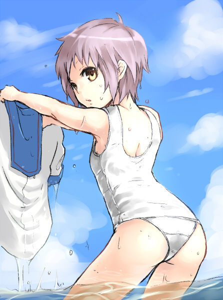 00s1girlassbrown eyesdayfemale focuslooking backone-piece swimsuitschool swimsuitschool uniformserafukushort hairsoloswimsuitwetwhite one-piece swimsuitwhite school swimsuit