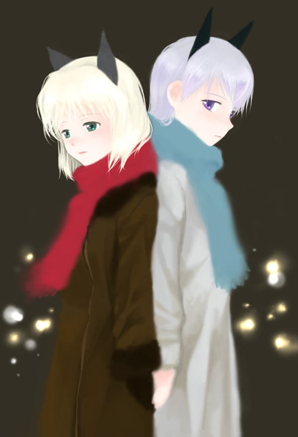 00s2girlsanimal earsback-to-backblonde hairblushgreen eyeslong hairmultiple girlspurple eyesshort hairyuri