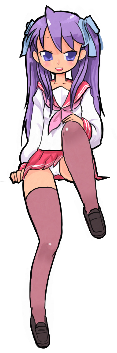 00spantiespantyshotpurple eyespurple hairribbonschool uniformserafukusittingsmilesolothighhighstsurimetwintailsunderwearupskirtwhite panties