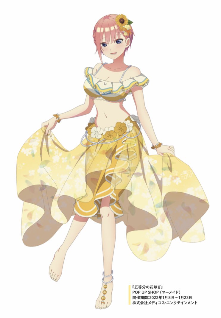 :d1girlanime coloringankletbarefootbikinibikini skirtblue eyesbraceletbraidbreastscleavageclothes liftcollarboneflowerfull bodyhair flowerhair ornamentjewelrylarge breastslight blushlooking at viewerlower teeth onlynaveloff shoulderoff-shoulder bikiniopen mouthpink hairsarongsarong liftsee-through clothessee-through sarongshort hairsimple backgroundsingle sidelocksmilesolostandingstanding on one legstomachsunflowersunflower hair ornamentswimsuitteethwhite backgroundyellow bikiniyellow sarong