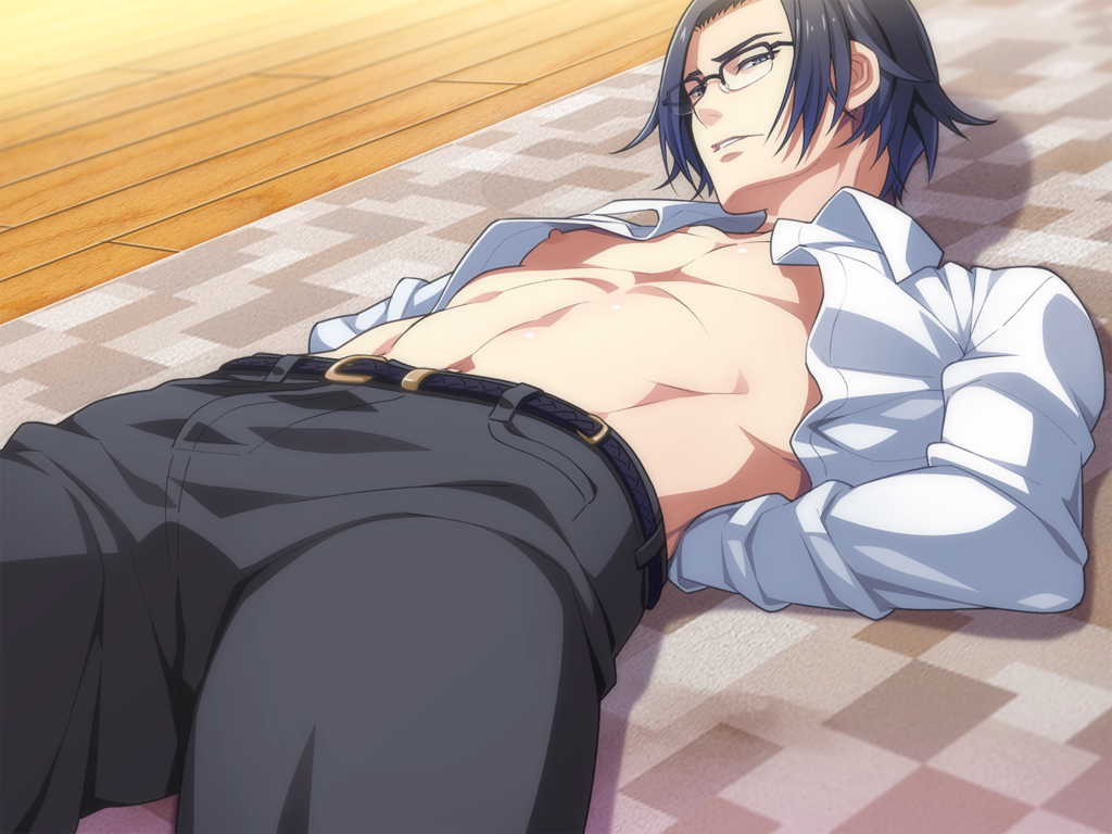 1boyabsblack hairblushbulgeFlag for Deletionglassesmale onlymusclepecspenisrestrainedshort hairsweattesticlesunderwearundressingwinceyaoi
