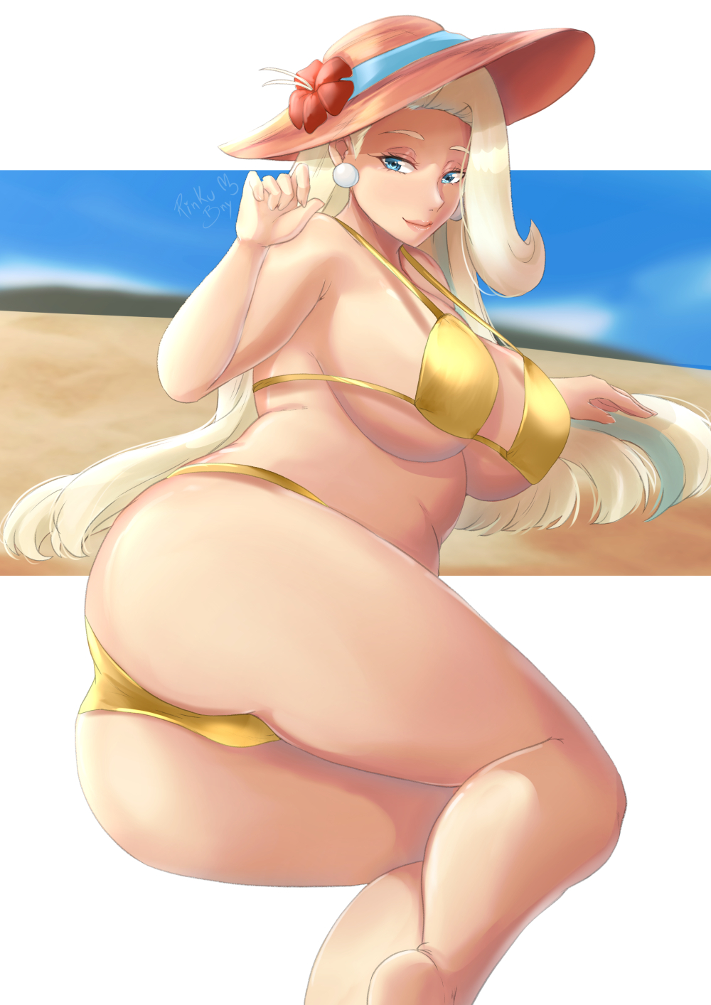 1girlsassbeachbig assbig breastsbikinibikini bottombikini topblue eyesbottomwearbreastscleavageear piercingearringsfemalefemale onlyFlag for Deletiongold bikinigolden bikinihairhatheadwearhuge breastslong hairmaturemature femalemature womanmilfmotherpokemonrinku bnysolosolo femaleswimwearthighstopwearwhite hairyellow bikini