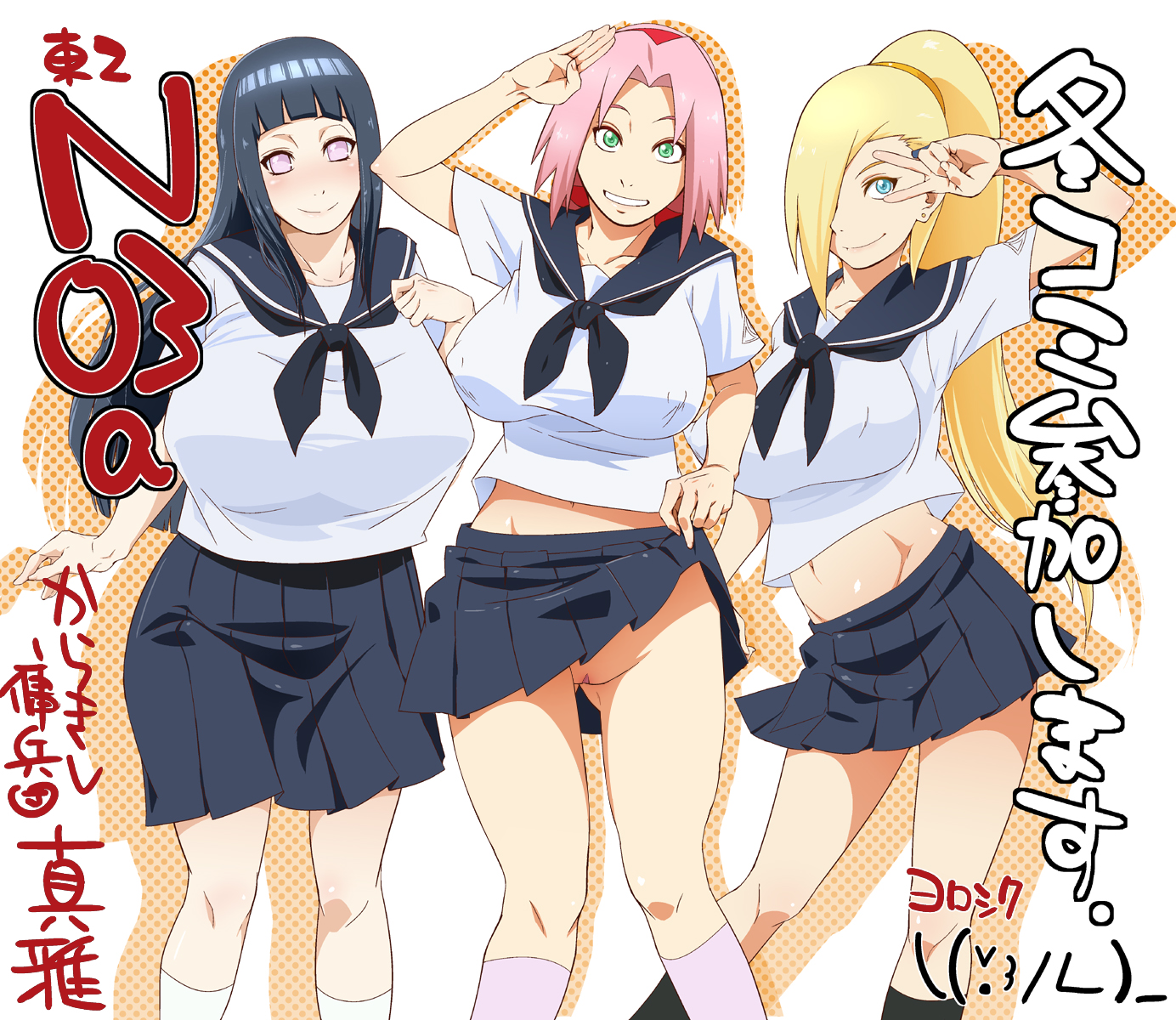 3girlsbike shortsblonde hairbottomlessbreastsfemalefemale onlyFlag for Deletionhair over one eyehairbandhime cuthumanlarge breastslavender eyesmidriffmultiple femalesnavelpink hairpurple hairschool uniformsocksv