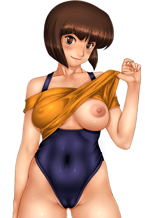 1girlsblushbreastsbrown eyesbrown hairFlag for Deletionlarge breastslooking at viewernipplesone breast outshiny skinshort hairsmilesolostomachswimsuit