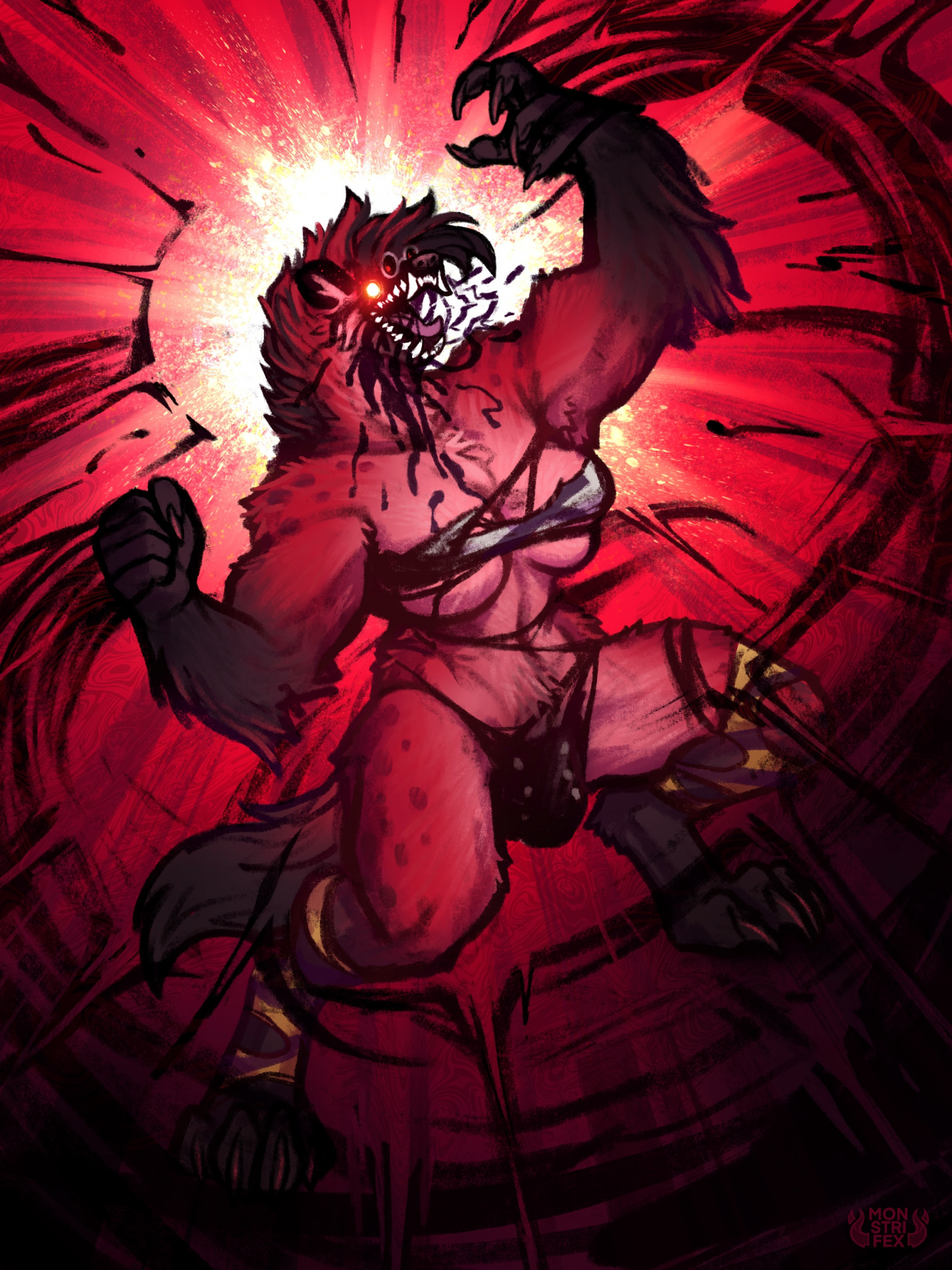 after transformationanthroblack goobottomwearbulgeclawsclothingdigitigradeeyewearfangsfemaleFlag for Deletionfluffyfurfutanariglowingglowing eyeshyenaintersexleggingslegwearmammalmanemonstermonstrifexmulticolored bodymulticolored furmuscularmuscular anthromuscular femalered bodyred furroaringsolospotssunglassesteethtopweartorn bottomweartorn clothingtorn topweartransformationvyruem