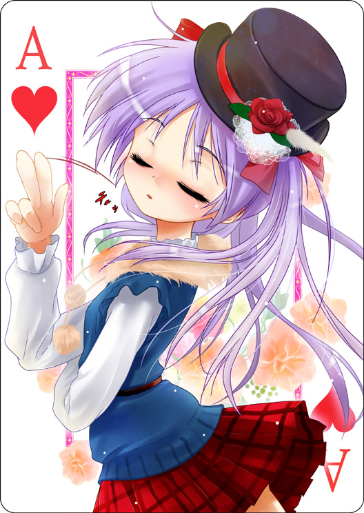 00sace (playing card)ace of heartscardcard (medium)closed eyeshair ribbonhatheartplaying cardplaying card (medium)purple hairribbonsolo