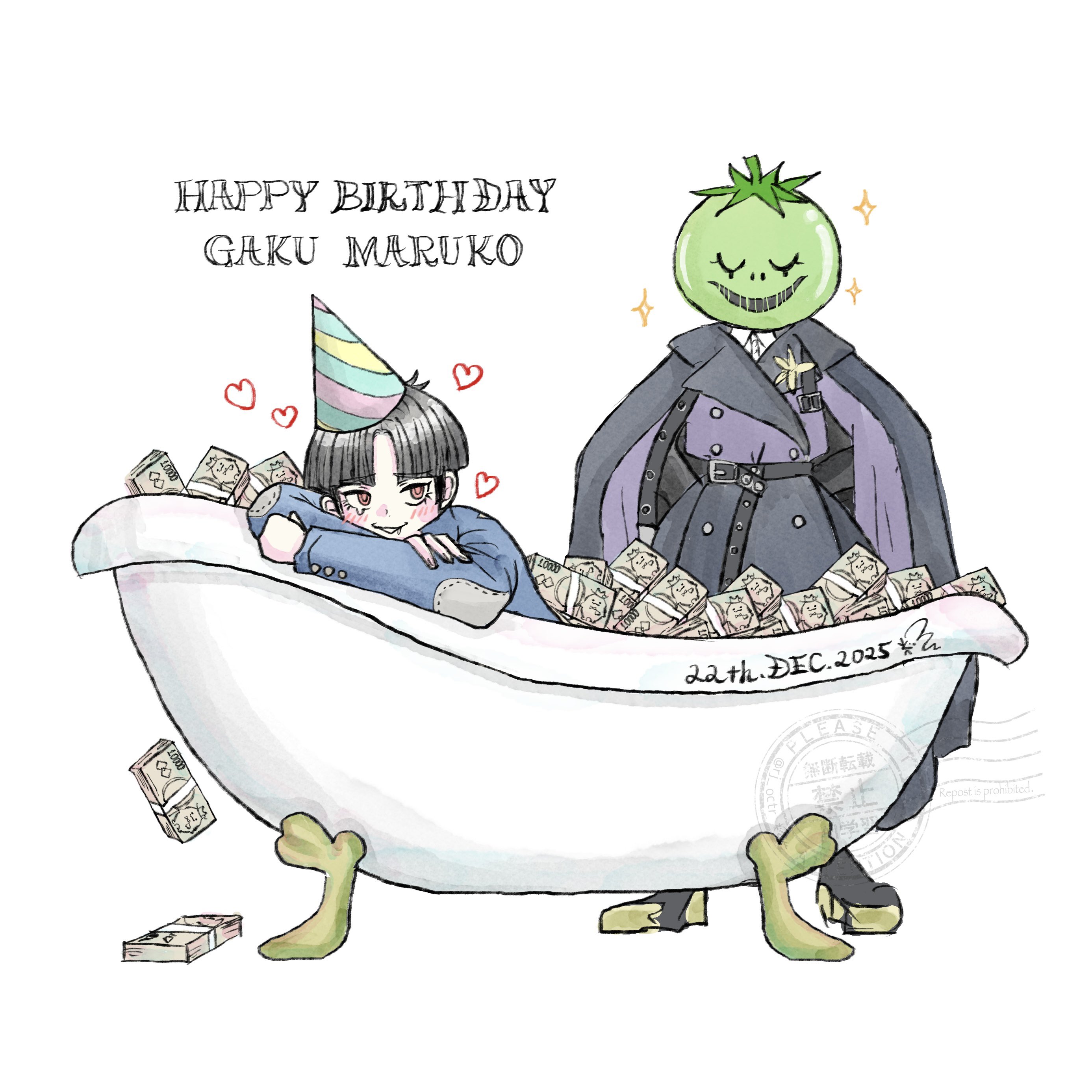 1boy1girlbanknotebathtubblack dressblack hairblue jacketblushclaw foot bathtubclosed eyesdateddressdripping eyedroolingenglish texthappy birthdayheartin bathtubjacketleaning on objectmaskedmoneyparted bangspatchwork clothesred eyesshort hairsimple backgroundsparklewatermarkwhite background