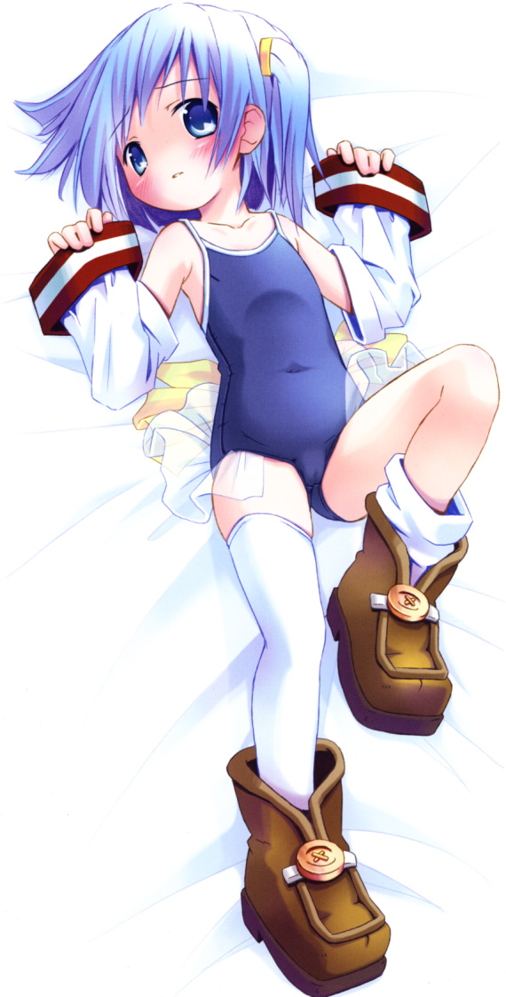 00s1girlbedblue eyesblue hairblushbootscameltoedetached sleevesfemale focusflat chestlarge buttonslolilyingmatching hair/eyeson backone-piece swimsuitschool swimsuitshort hairshort twintailsskirtsoloswimsuitswimsuit costumethighhighstwintailswhite thighhighs
