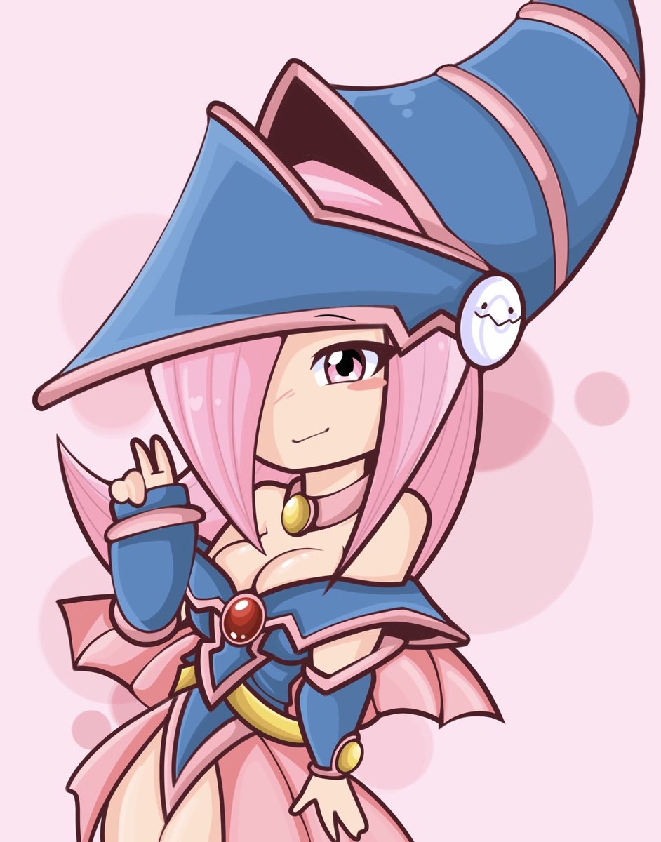 -cuteblushbreastscleavagedark magician girl (cosplay)femalefemale onlyFlag for Deletiongeoexelong hairmagical girlmagicianmagician hatmedium breastsone eye coveredpeace signpink eyespink hairseabunny pismilesmile at viewer