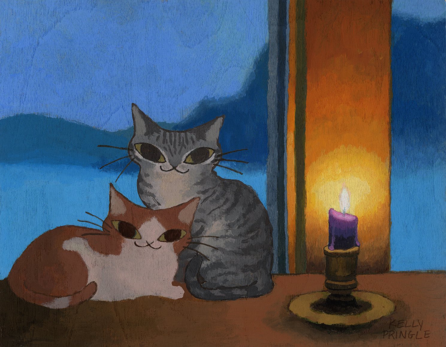 animalanimal focusartist namecandlecandlestandcatfiregrey catindoorslooking at viewermulticolored catno humanson tabletabby cattablewindowwooden tableyellow eyes