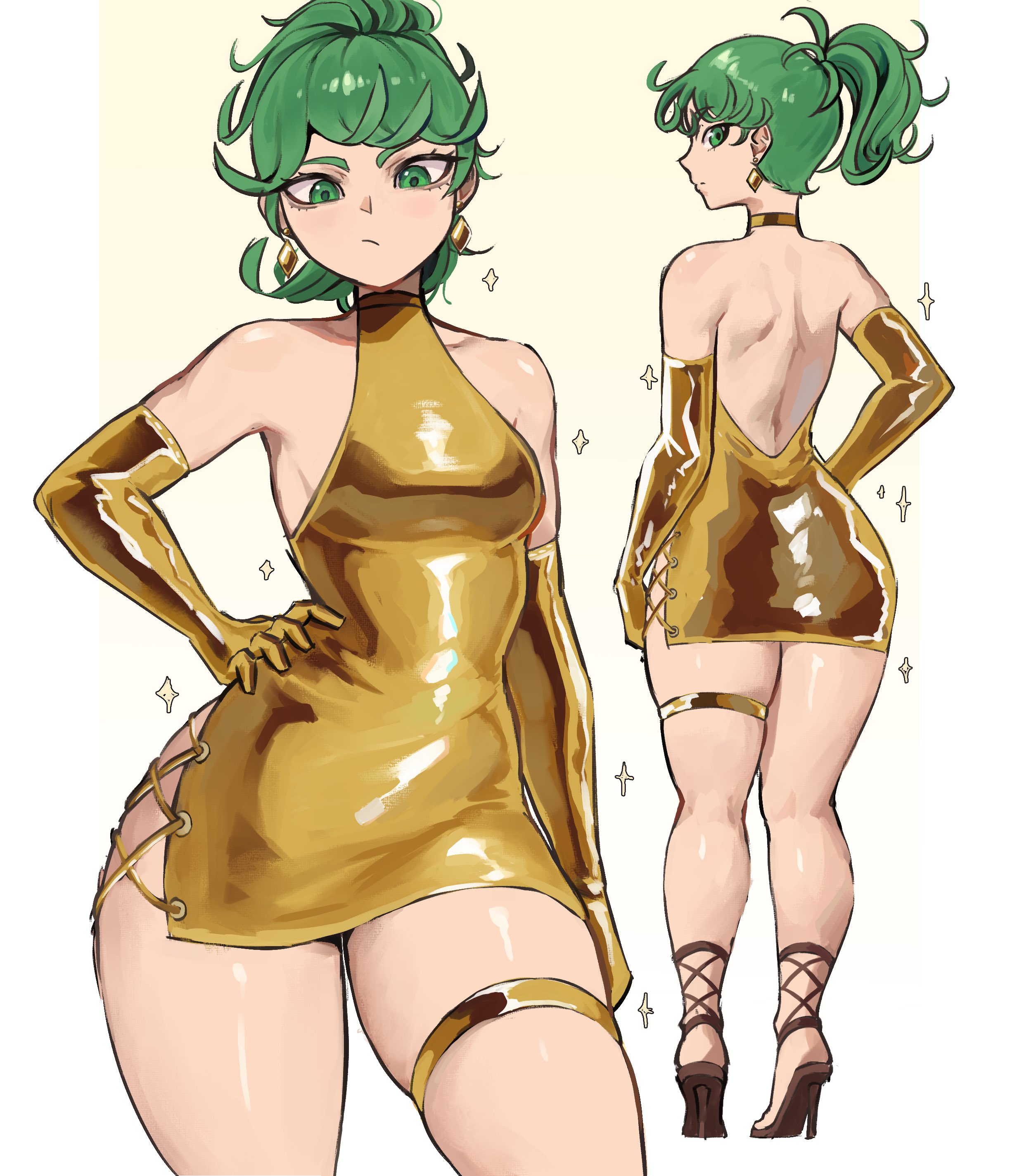 1girlsbreastsdressfemalefemale focusfemale onlyFlag for Deletiongreen eyesgreen hairhigh heelslight skinlight-skinned femalelooking at viewersagaandersartsmall breastssolothick thighsthighswide hips